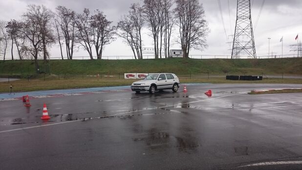 Insgesamt gingen 25 Fahrer bei mäßigem Wetter an den Start, darunter eine Dame. Alle Fahrer fuhren wieder mit demselben Fahrzeug, einem VW-Golf, um den kleinen Kurs der Kartbahn Liedolsheim.