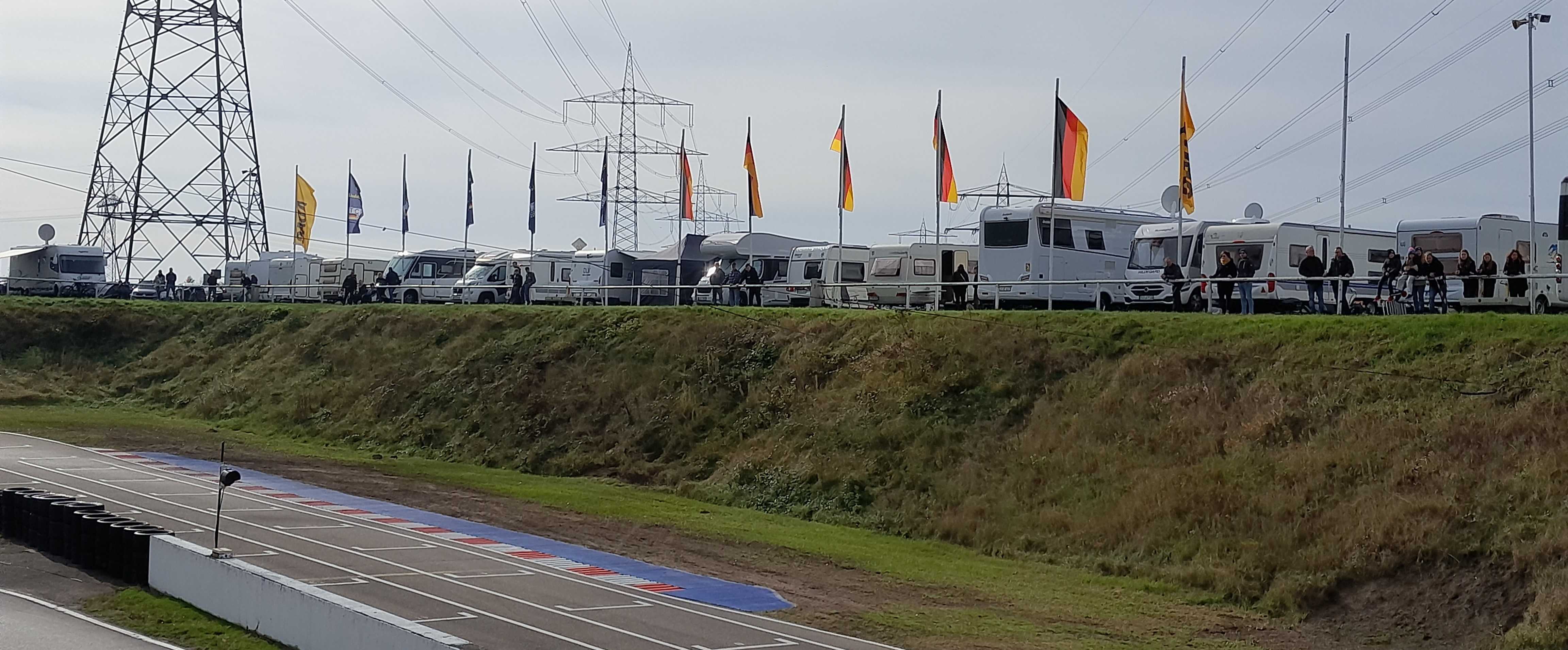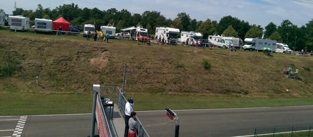 Mit 109 Fahrern war auch das Fahrlager im Außengelände und der Camping-Bereich am Hang rege besucht. Einige große Teams mit Ihren riesen Trucks und Zelten waren auch dabei.