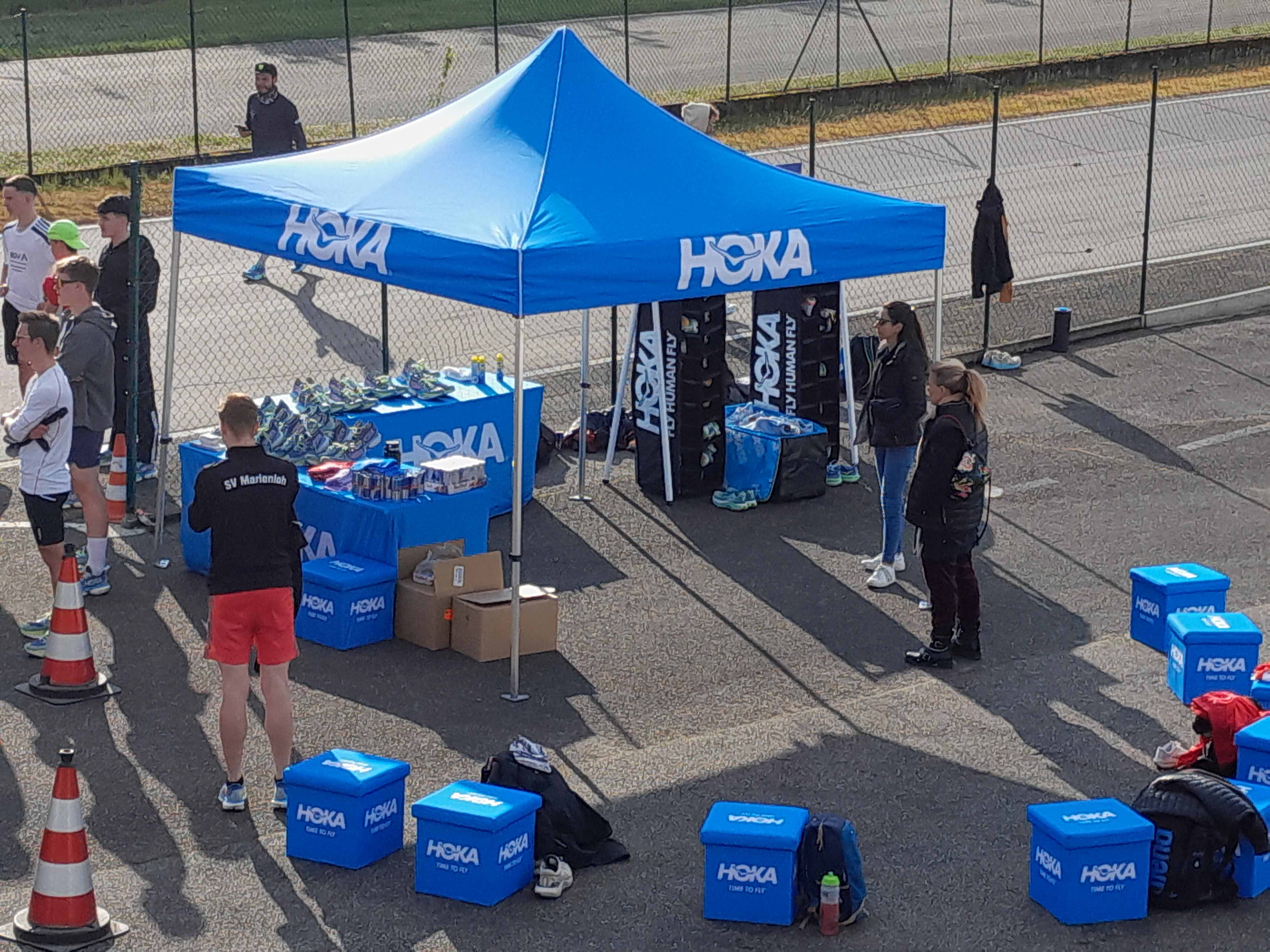 Mitte April und bei schönstem Wetter konnten wir die Firma Explosion aus Pforzheim mit Ihrem HOKA-Laufschuhe Event auf der Kartbahn begrüßen. Dazu hatten sich zahlreiche Läufer und Läuferinnen aus nah und fern an der Kartstrecke eingefunden. Die Firma Explosion bot jede Menge verschiedener Laufschuhe der Marke HOKA zum direkten Testen an. Die Läufer konnten sich ihre HOKA-Schuhe aussuchen und ausgiebig auf unserer 1.060 Meter langen Strecke testen. Nach dem einige Runden auf der Bahn gelaufen wurden, konnten sich alle Teilnehmer bei unserem Wirt Markus Eder bei belegten Brötchen und ausreichend Kaltgetränke gut stärken.
