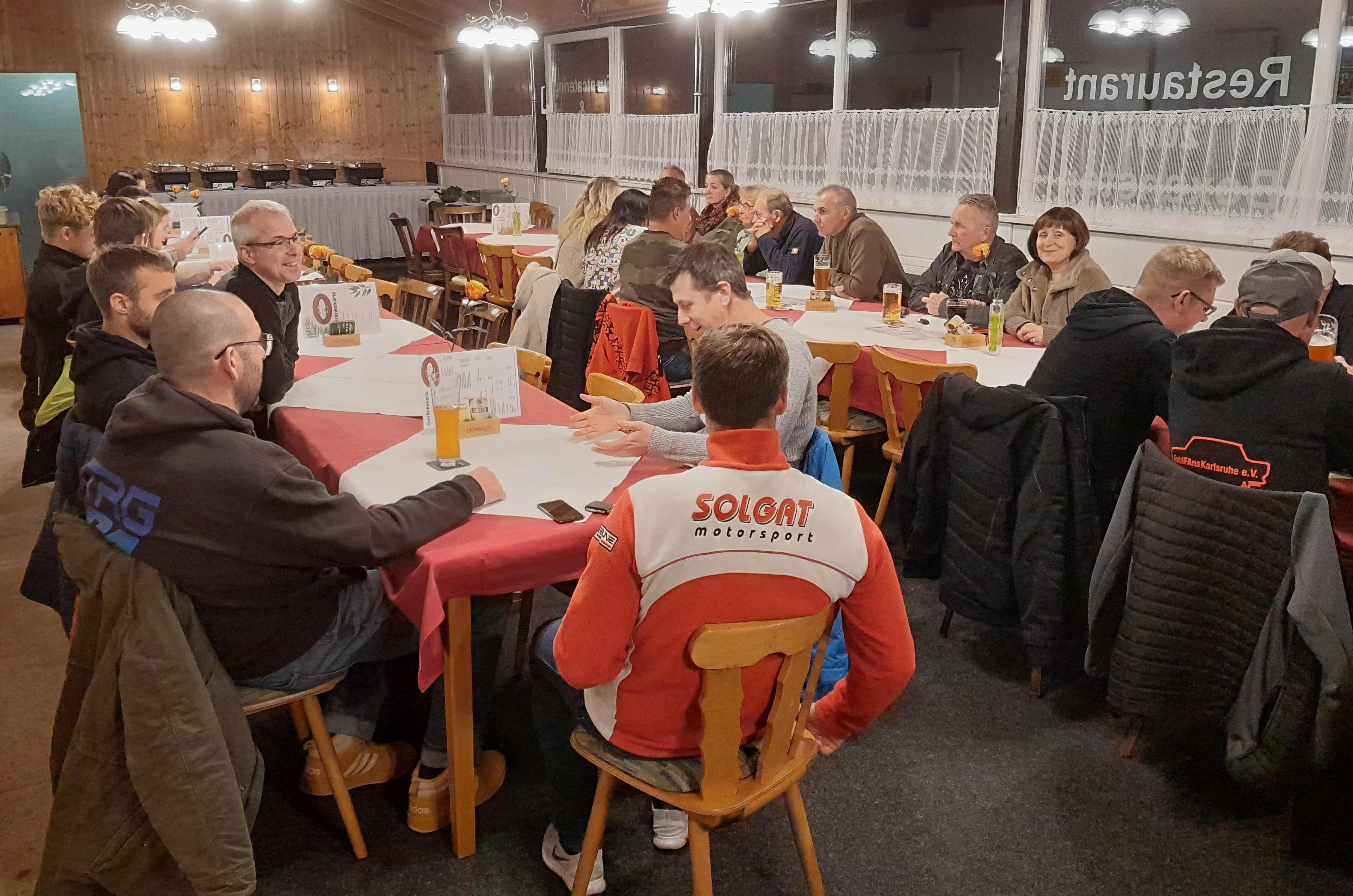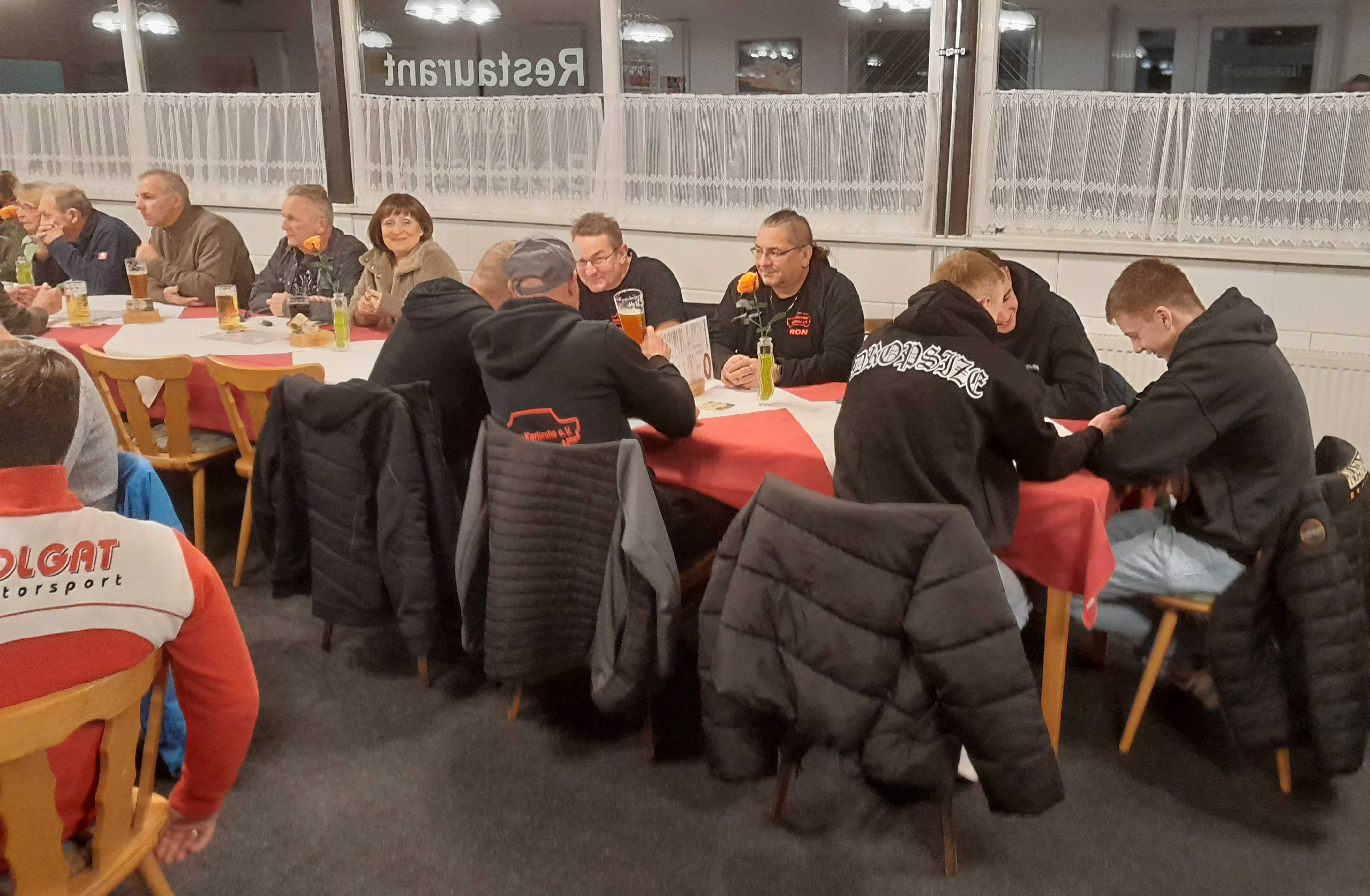 Nach den beiden großen Rennen, dem SAKC und dem ADAC Kart Bundesendlauf 2024, haben wir am 23.November für unsere fleißigen Helfer ein Helferfest im Nebenraum der Gaststätte Boxenstopp ausgerichtet. Nur Dank des ehrenamtlichen Engagements der Verwaltung und einiger Mitglieder und der Unterstützung durch die Zweirad-Fahrer und Trabifreunde, konnten wir beide Veranstaltungen überhaupt erst ausrichten. Ein herzliches Dankenschön nochmals an alle Helfer. Obwohl an diesem Wochenende andere Festivitäten waren, konnten wir um die 30 Personen begrüßen. Unser Vorstand Sigi Lehr begrüßte die Anwesenden und bedankte sich nochmals bei allen für den Einsatz. Danach eröffnete Sigi das Büffet. Es gab wieder ein üppiges Büffet mit verschiedenen leckeren Braten, Beilagen und Salaten. Für ausreichend Getränke war bestens gesorgt und der Abend wurde zum Austausch und Plausch genutzt.
