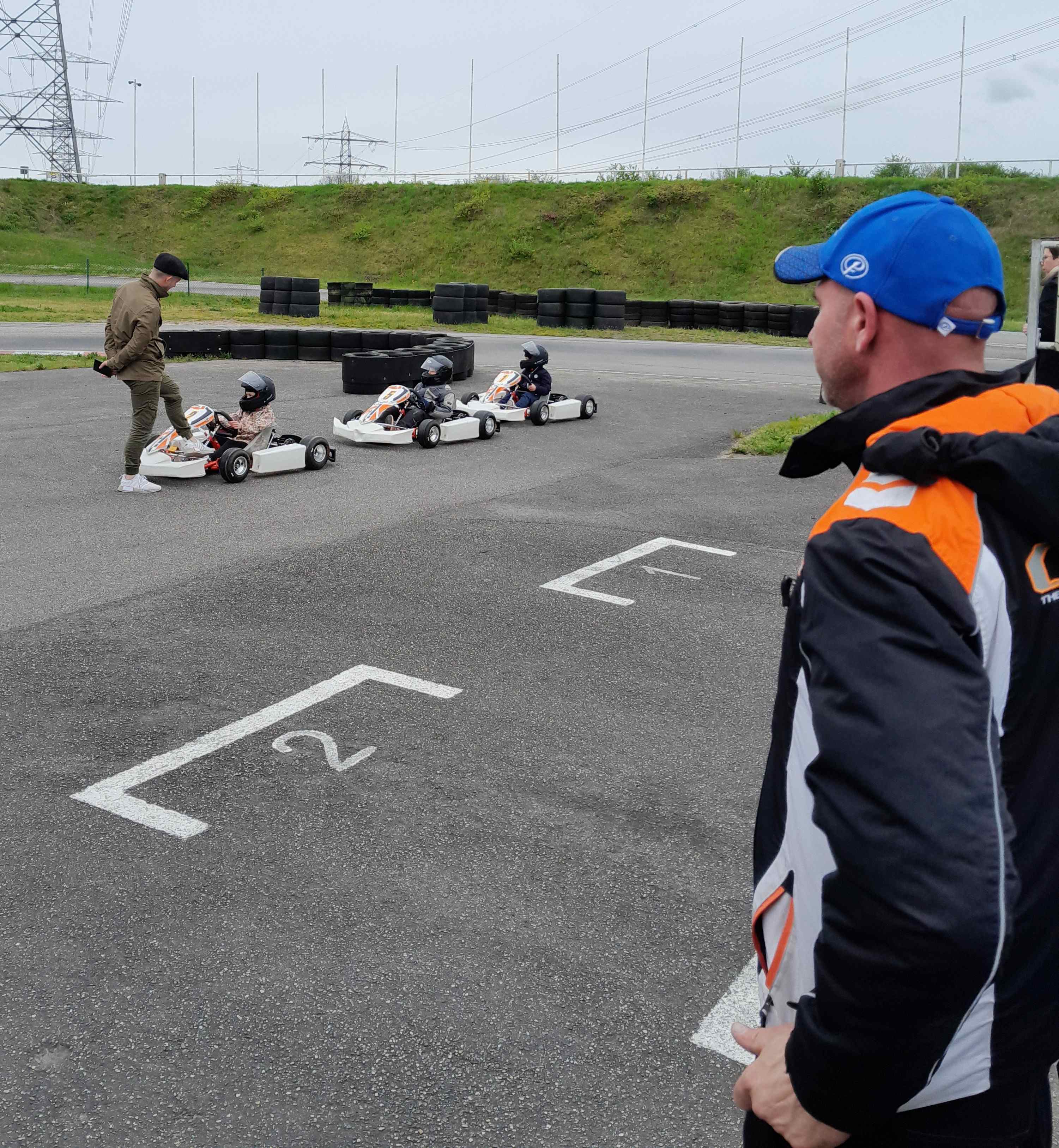 Unser Jugendwart Danny Stock und 2. Vorstand Christian Vogel zeigen den Teilnehmern mit großem Engagement theoretisches und praktisches Wissen rund um das Kart fahren. Neben Flaggenkunde, Brems -und Lenkübungen werden auf dem kleinen Kurs der Kartstrecke die Runden gedreht. Jugendwart Danny Stock fährt zu Beginn den "Frischlingen" voraus, um die Geschwindigkeit vorzugeben, beste Bremsmöglichkeit vor Kurven und Ideallinien, etc. zu zeigen. Die Eltern sind übrigens immer mit dabei und während der Kurszeit anwesend.