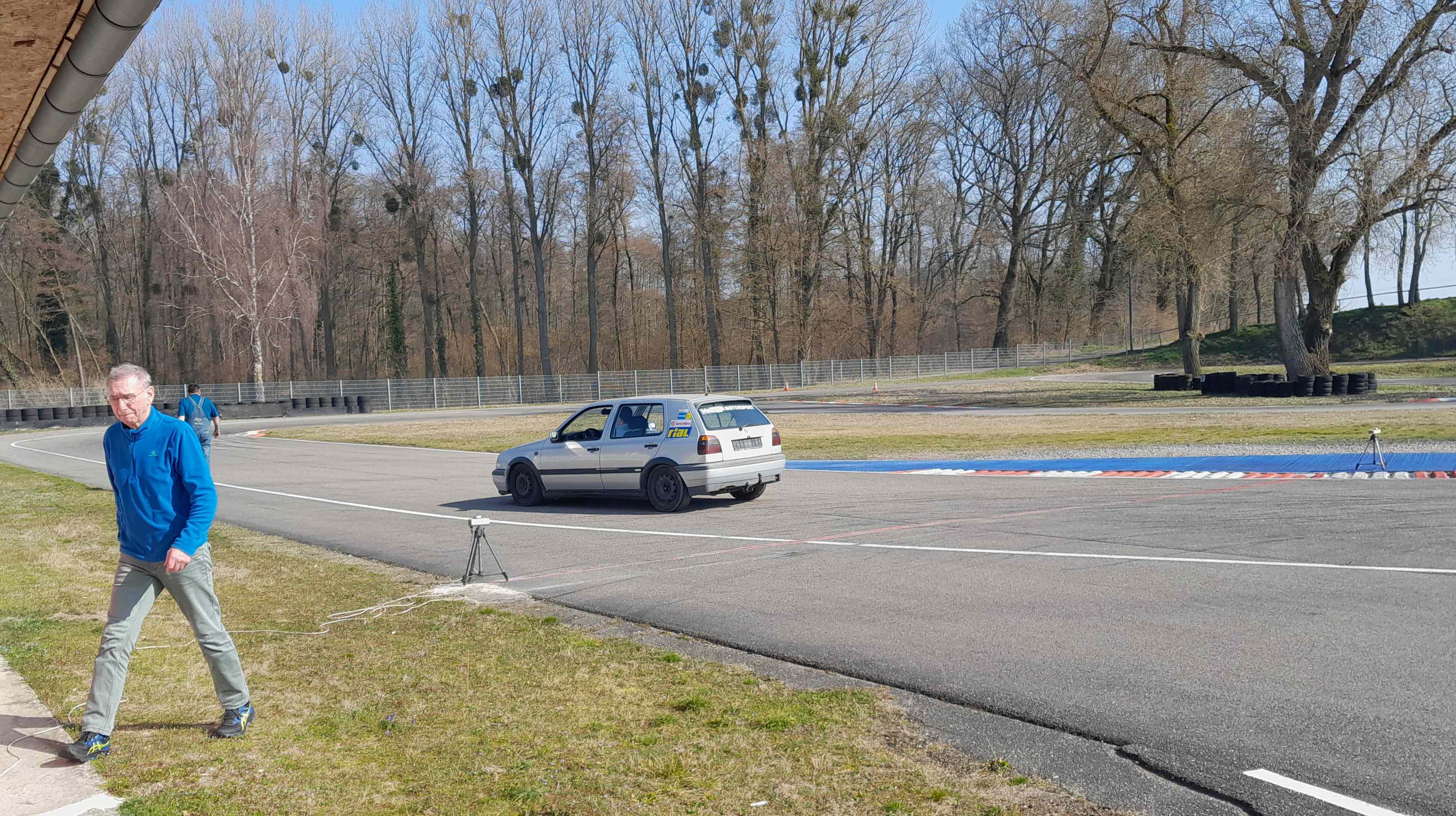 Insgesamt gingen 29 Fahrer bei idealem Wetter an den Start, darunter zwei Damen. Alle Fahrer fuhren mit demselben Fahrzeug, einem VW-Golf, um den kleinen Kurs der Kartbahn Liedolsheim.